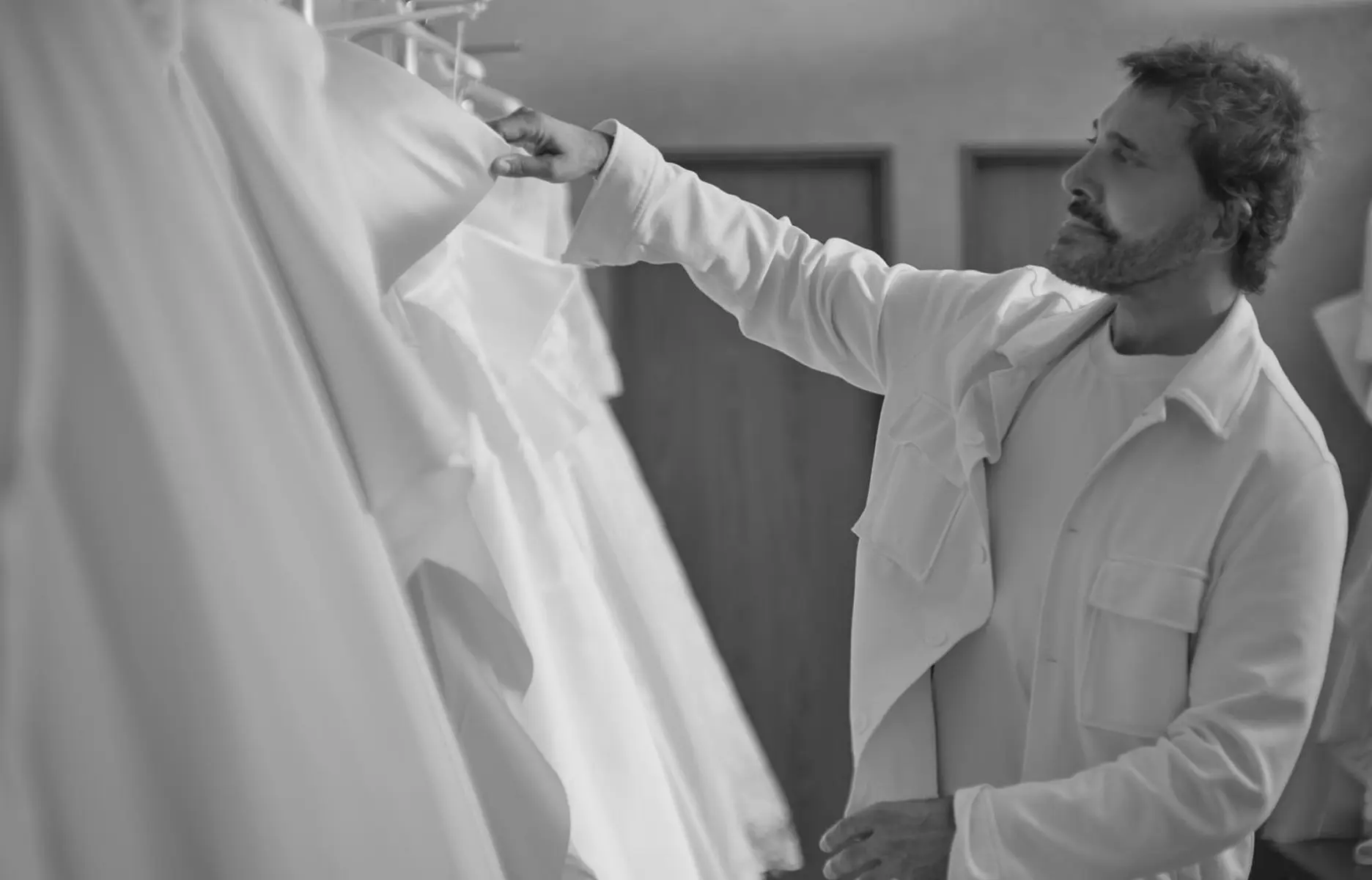 国際的なブライダルファッション界で、最も権威のあるクチュリェの一人であるアントニオ·リーヴァは、北イタリアの湖がある小さな町レッコに生まれました。幼少期から美に憧れを抱いて育ち、大学では建築学を専攻。この選択こそが、後に彼のドレス独自の構造美と立体感をもたらすことになります。建築学の素養を礎とした構築的なフォルムは、オートクチュールにおける3Dドレスの先駆けと称されます。上質なシルクにこだわり、イタリアの伝統的な仕立ての技術と彼の卓越したビジョンを融合させたコレクションは、完壁なプロポーションと軽やかな着心地が調和。世界中の花嫁から支持を集めています。イノベーションされたテクニックだけではなく、伝統的な縫製技術を大切にするアントニオ・リーヴァはMade in Italyのクオリティを伝えるアンバサダーとして、エレガンスを語り続けます。