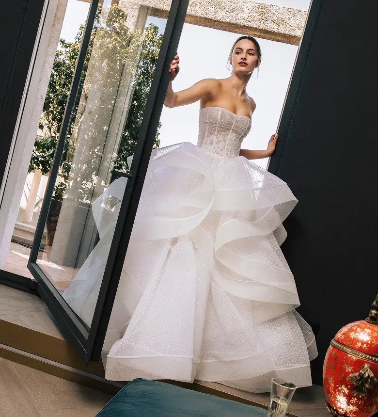 19 世紀の物語を現代風にアレンジして、人生の大切な日の感動を綴ります。上質な生地、仕立てのディテール、そして洗練されたコントラストが、調和のとれたシルエットに生命を吹き込み、都会の美しさとメゾンの伝統的な匠の技への美しいオマージュを捧げます。