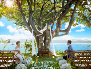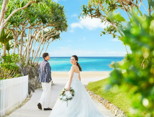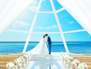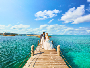 シェラトン沖縄サンマリーナリゾート2F ブライダルサロン内那覇空港よりリムジンバス『Cエリア 西海岸・南コース』乗車 1時間20分/路線バス『120番名護西空港線』「サンマリーナホテル前」バス停下車、徒歩3分