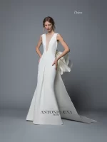 体のシルエットを美しく見せる事を意識してデザインされた一着。シンプルなフロントスタイルから少し見える バックトレーンは、華やかさをプラスします。