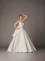 花嫁心をくすぐる贅沢に使用したエンブロイダリーレースとANTONIO RIVAを象徴する立体的なバックシャンスタイル。 シルクのマーメイドにボリューム満点のトレーンをオンし、大胆に広がるシルエットと艶が、スタイルアップを叶えてくれます。
