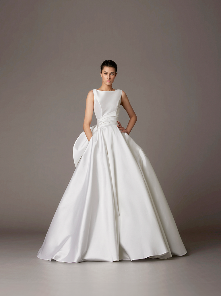 優雅で細部まで計算された構築的で上品な一着。 ボートネックのデザインは、首回りがすっきりしていて、クラシック且つ高貴な印象に仕上がります。