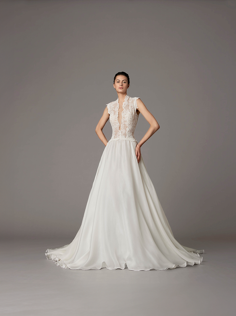 センシュアルな透け感が美しいレースドレス。 スカートはとろみのあるシルクガーゼが使用されており、トレンドのリラックス感もある一着です。 ※トップスのデザインを一部変更しております。