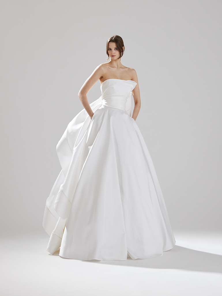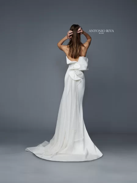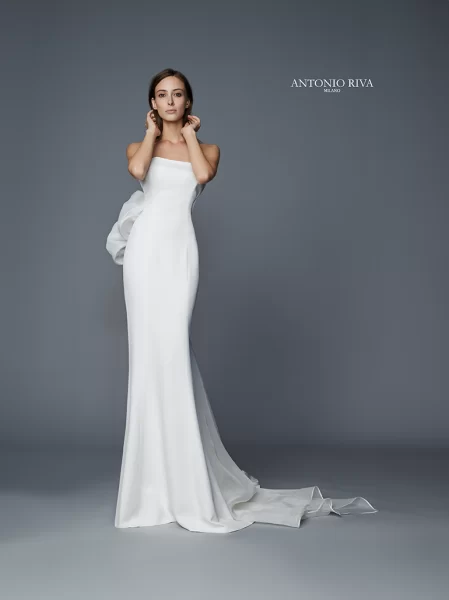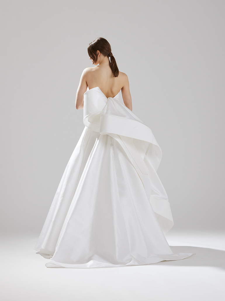 今シーズンを象徴するビッグボウ(リボン)。 その中にもANTONIO RIVAらしい構築的なドレープを 感じさせる一着です。