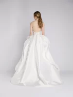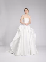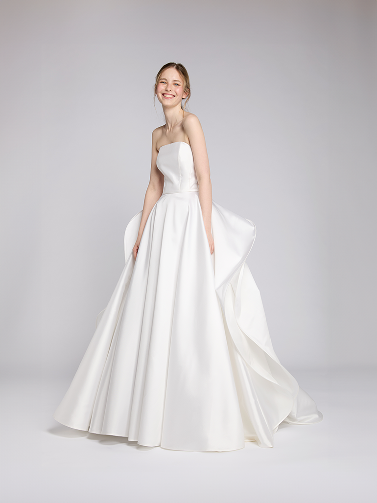 コレクションではカラーをイメージしデザインされた1着から、さらにイメージを膨らませ、バックリボンにアレンジを加えることで花びら1枚1枚が重なり一つの花となる睡蓮のドレスに。