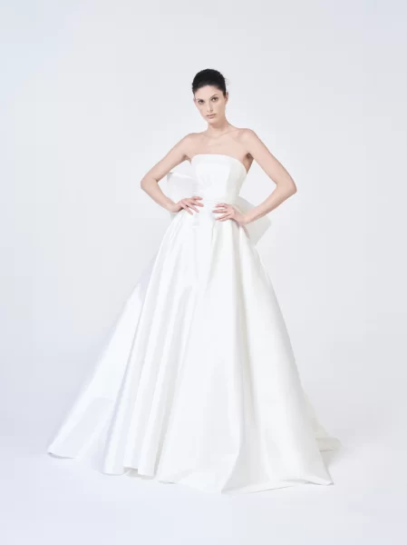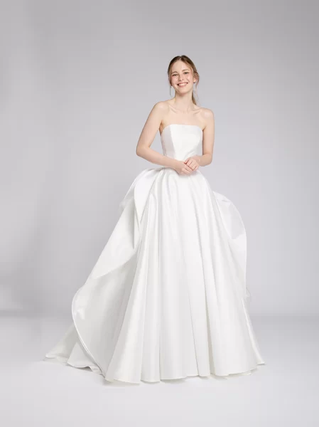 コレクションではアメリアをイメージし発表されたスタイルを日本の花嫁様へ向けトレーンを長くしお届けします。マーメイドラインでも、より華やかなバックスタイルをお楽しみいただけます。