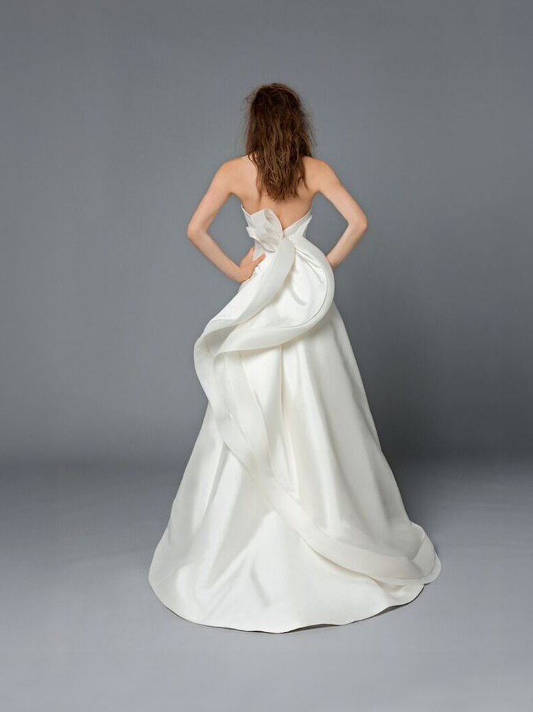 胸元から背中にかけて流れるような曲線を入れ軽やかさを表現。直線と曲線を組み合わせることで、どの角度から見ても女性らしいシルエットに仕上がった一着。
