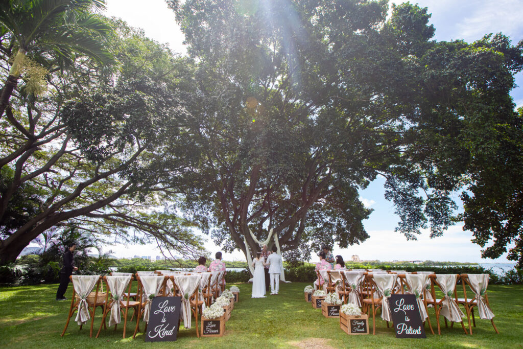 #ガーデン #人気! #ハワイらしい雰囲気 #プライベート感 #ガーデンパーティー #緑に囲まれている #ゲストとビーチフォト #ふたりきりで #大人数OK #少人数OK #海が見える #バージンロード10m以上 #組数限定 #貸切可能 #大きな樹の下 #パーティ会場併設 #ナチュラル #アットホーム