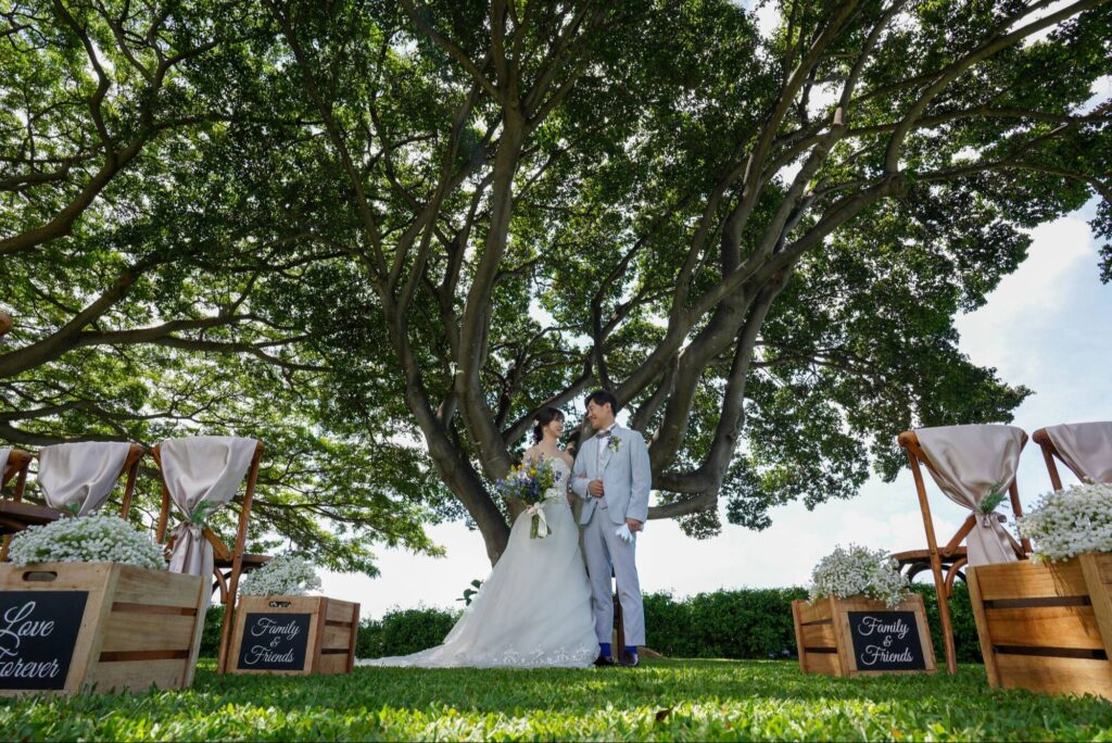 #ガーデン #人気! #ハワイらしい雰囲気 #プライベート感 #ガーデンパーティー #緑に囲まれている #ゲストとビーチフォト #ふたりきりで #大人数OK #少人数OK #海が見える #バージンロード10m以上 #組数限定 #貸切可能 #大きな樹の下 #パーティ会場併設 #ナチュラル #アットホーム