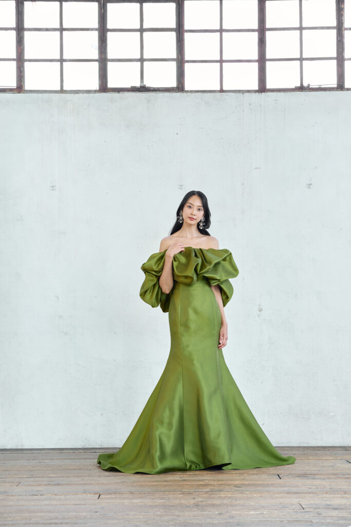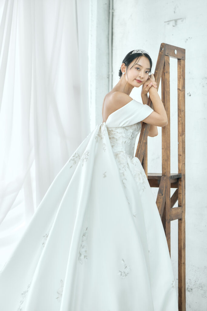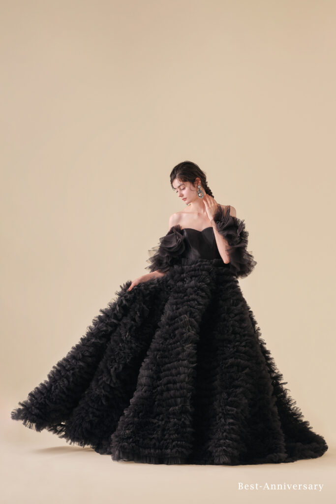 表すものであるべき」をコンセプトに、女性らしさやオリジナリティを表現したドレスが揃う。デザイナーが学んできた建築学を生かし、立体的なカッティングやしなやかなフィット感、他には見られない独創的なデザインが魅力。
