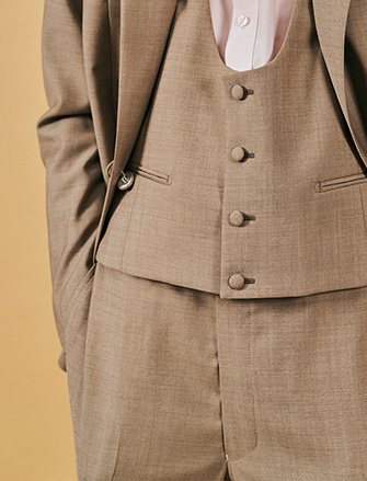 ブラックのタキシードは大切な日にふさわしいオーセンティックな一着。いつの時代も定番品として愛されています。イタリアの名門服地メーカー「カノニコ」の生地の程よい光沢感と気品溢れる美しい黒色が印象的です。