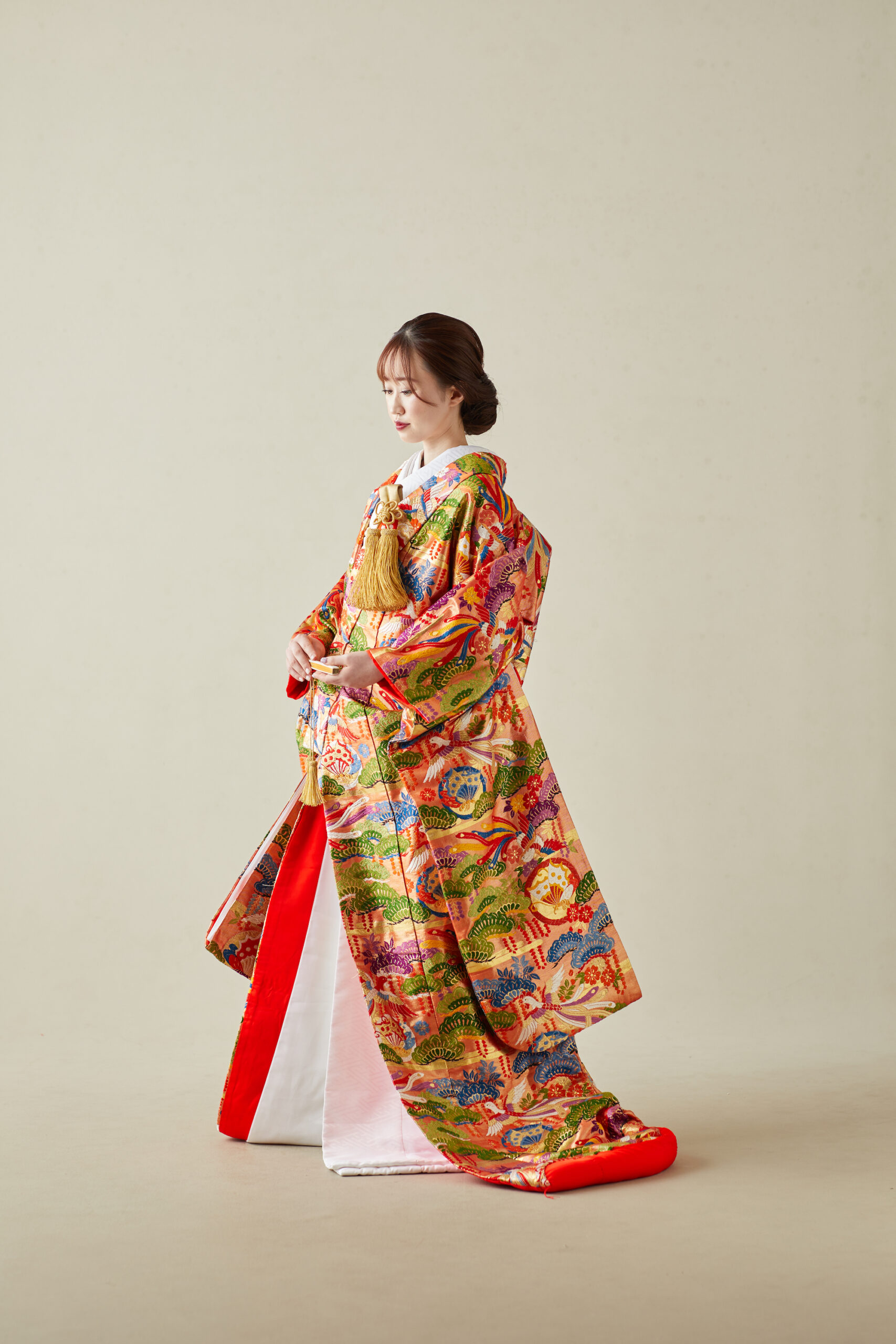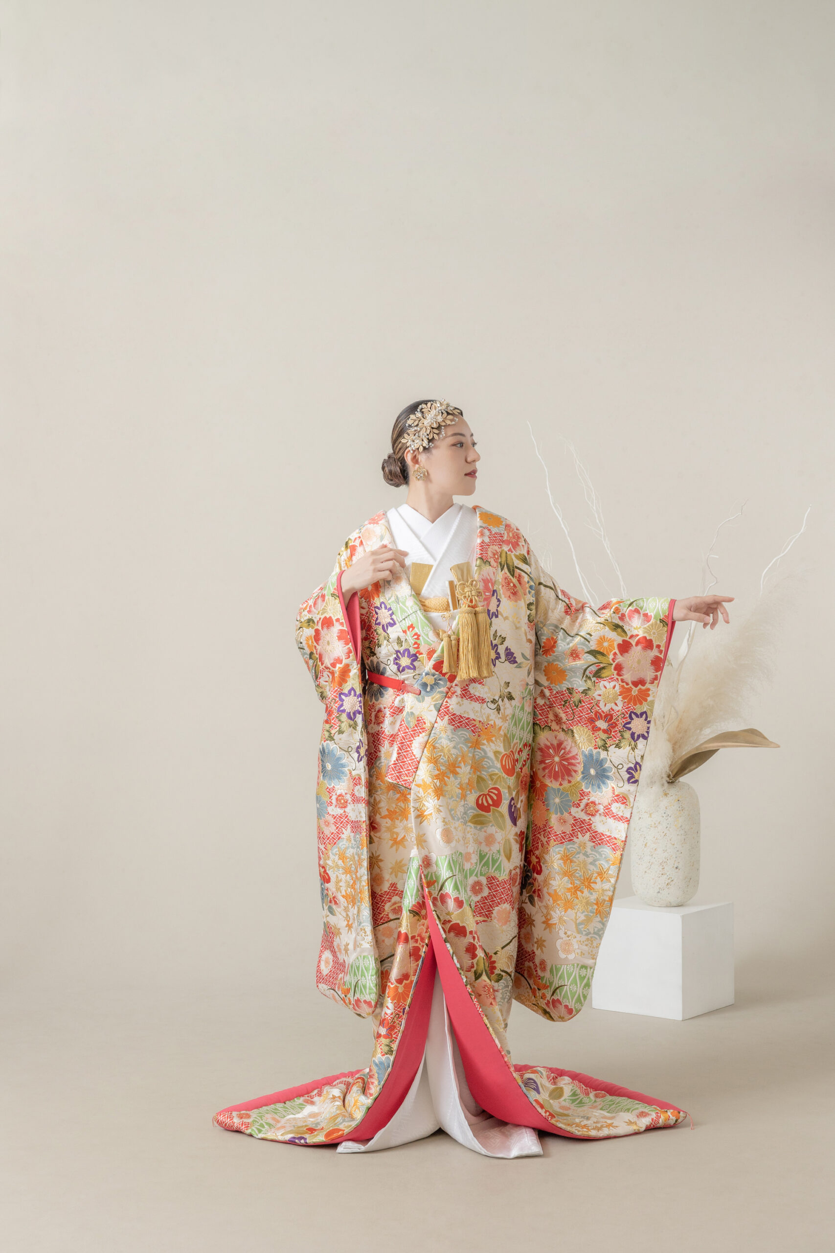 格式高い繊細な刺繍が施された立体感溢れる白無垢や、オーロラ糸を織り込んだ華やかな着物など豊富に取り揃え。伝統はもちろんトレンド感あるオシャレなコーディネートも叶えます。