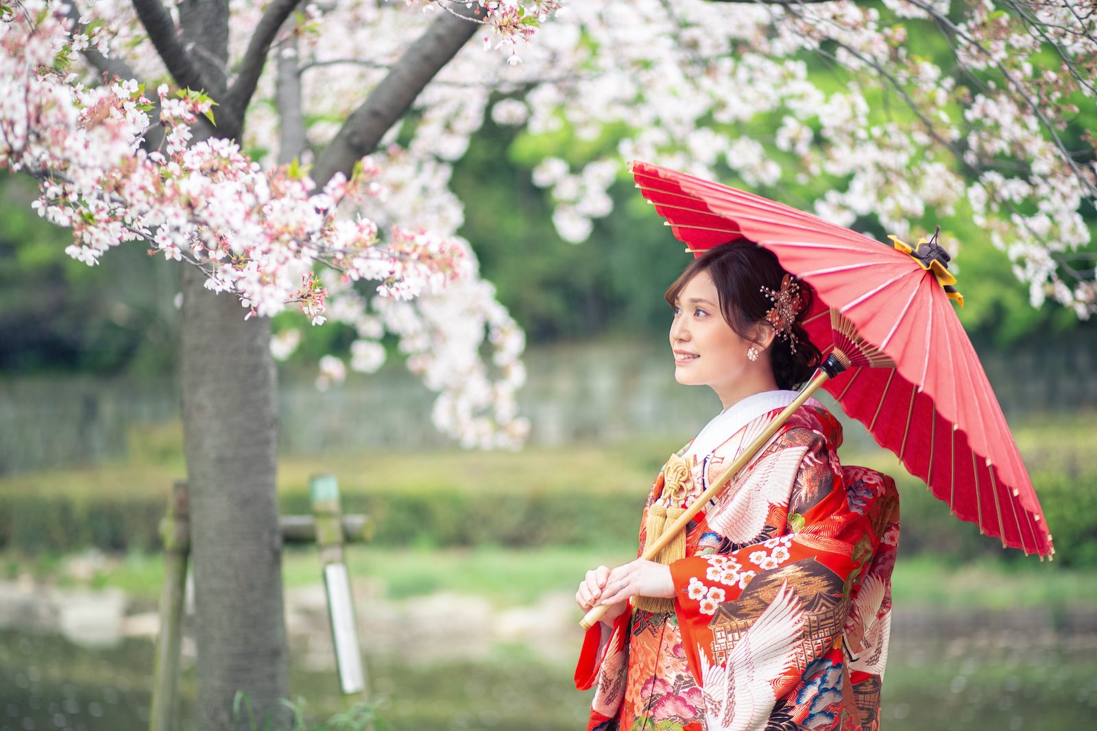 桜並木が描くピンクのアーチは、和装姿のお二人を優しく包み込み、まるで一枚の日本画のような美しさを演出します。春の柔らかな光に照らされた桜のトンネルで、ひらひらと舞い降りる花びらが、凛とした和装姿に華やかな彩りを添えながら、思い出に残る特別な一枚を作り出します。