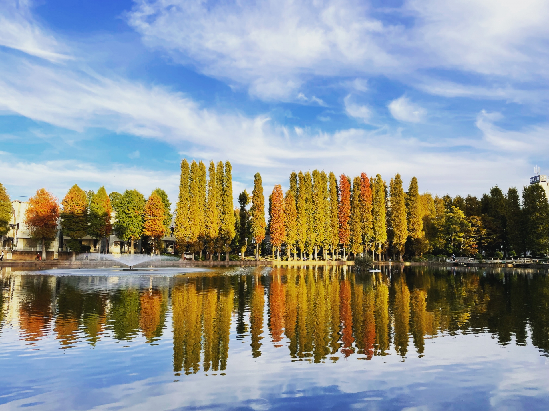 江戸時代から親しまれてきた別所沼を中心に、四季折々の景観が楽しめます。水面に映り込む空や木々が織りなす水鏡のような美しさは、ウェディングフォトならではの幻想的な一枚を生み出します。