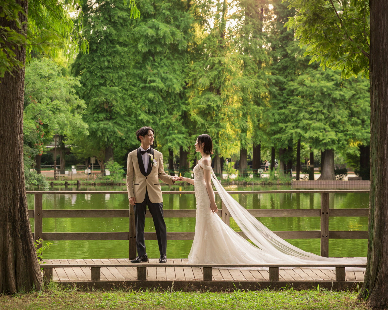 都会の喧騒を忘れ、静かな自然に包まれた別所沼公園で、二人だけの特別な前撮りやフォトウェディングをお楽しみください。
