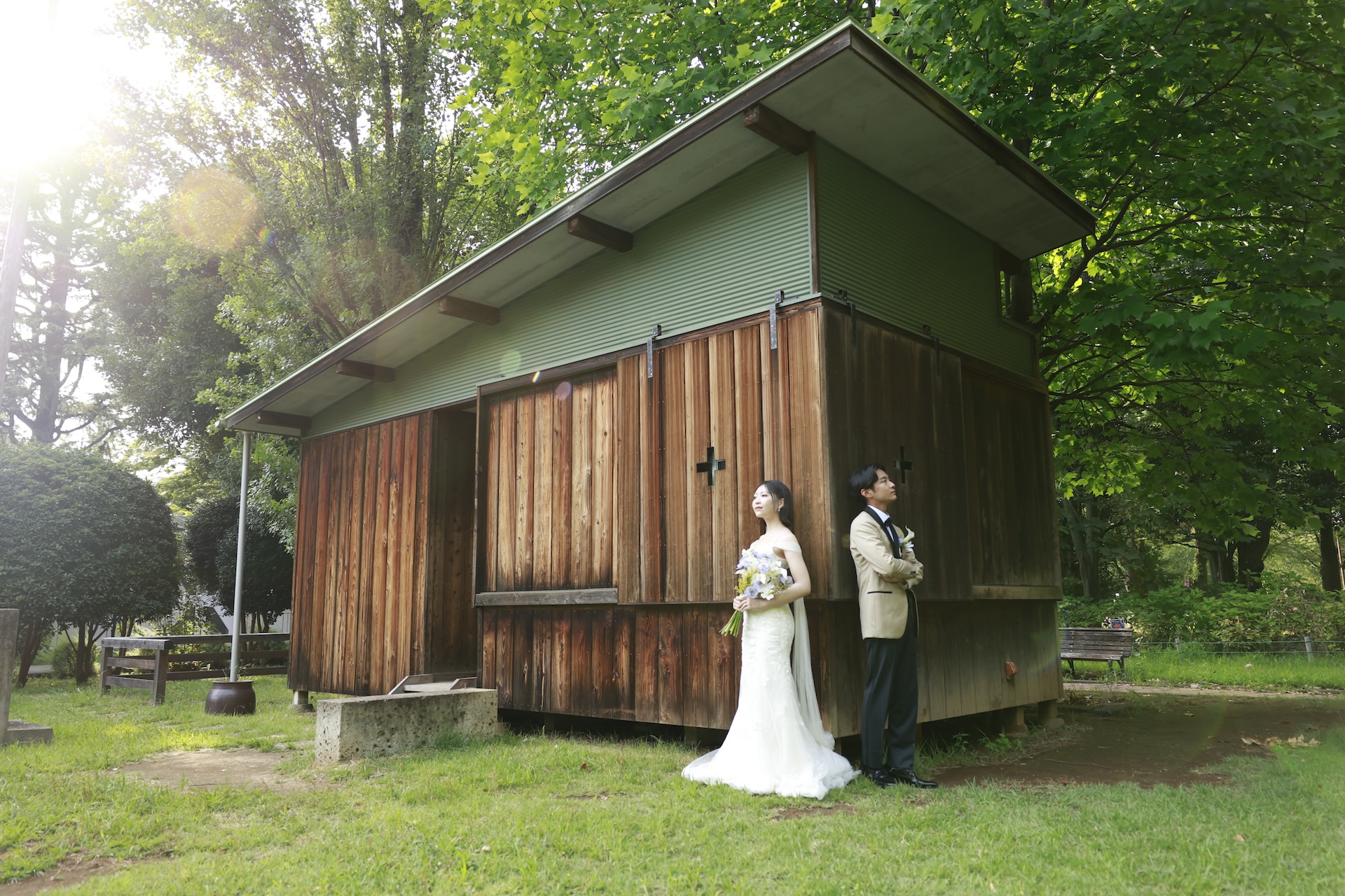 詩人・建築家の立原道造が構想した、モダニズムの光を宿す木造建築ヒアシンスハウス。時を超えて現実となったこの場所は、お二人の愛の軌跡と静かに響き合います。絵本から抜け出したようなノスタルジックな佇まいは、特別な日のフォトウェディングに、知性と、儚くも美しい夢のような背景を添えてくれるでしょう。