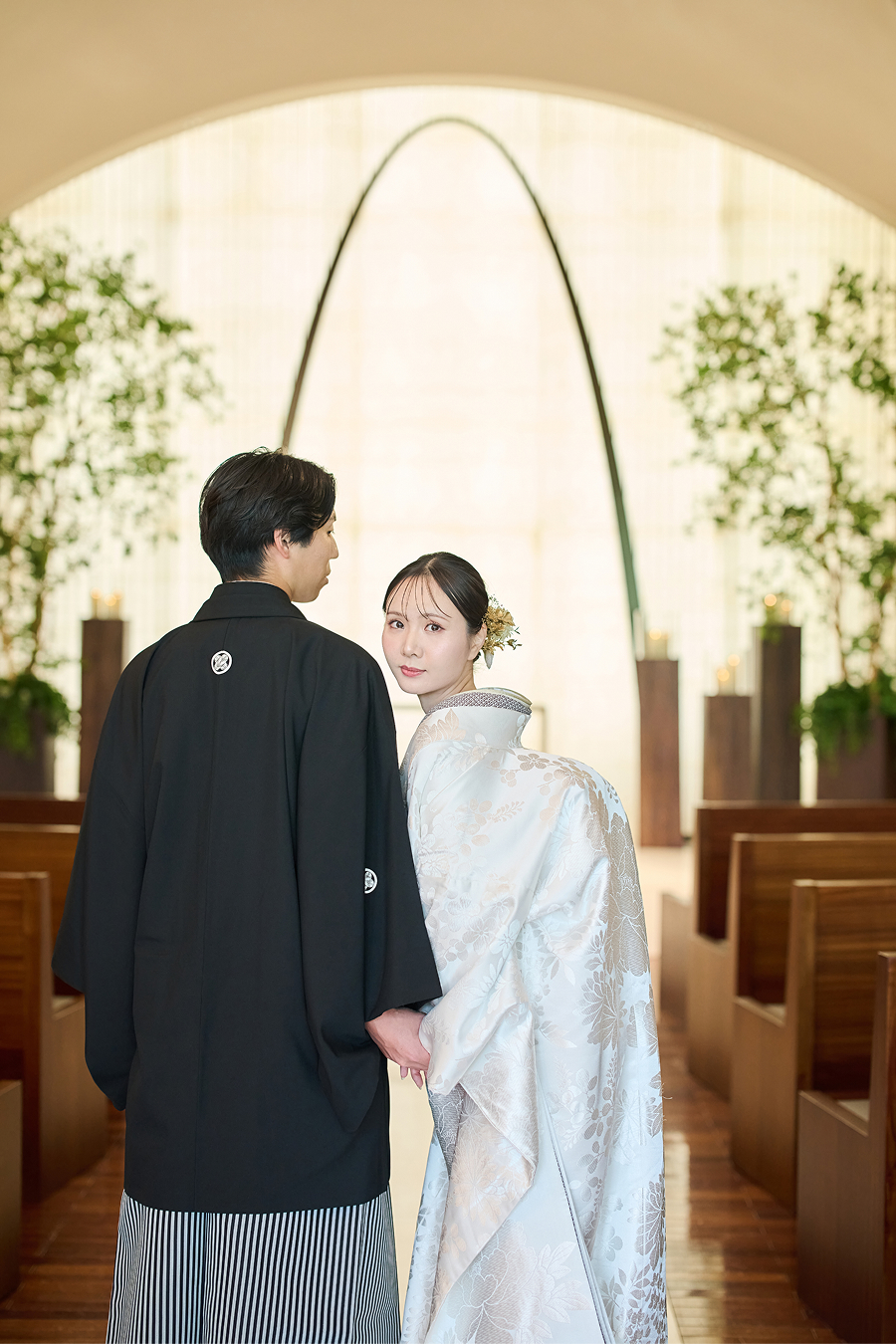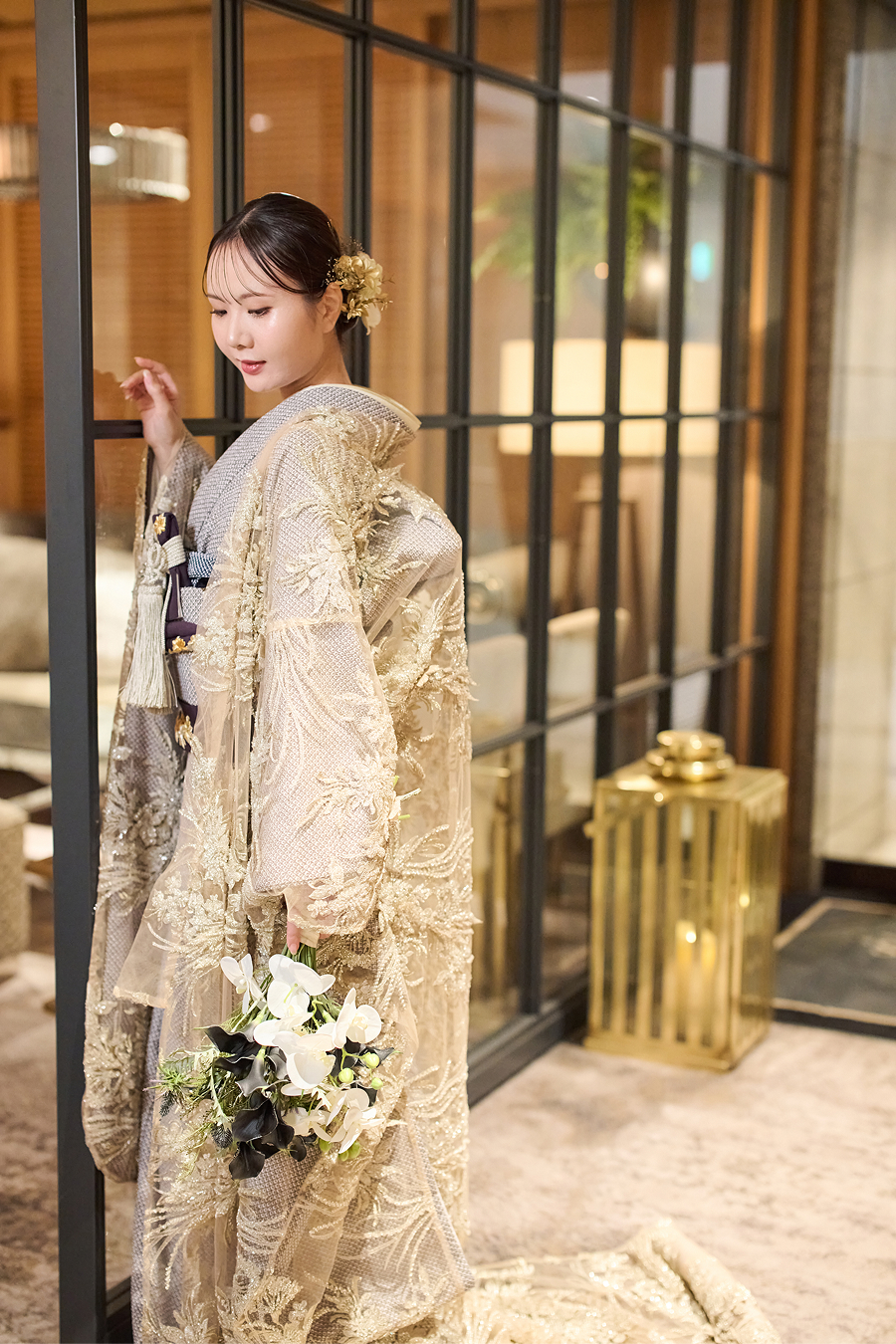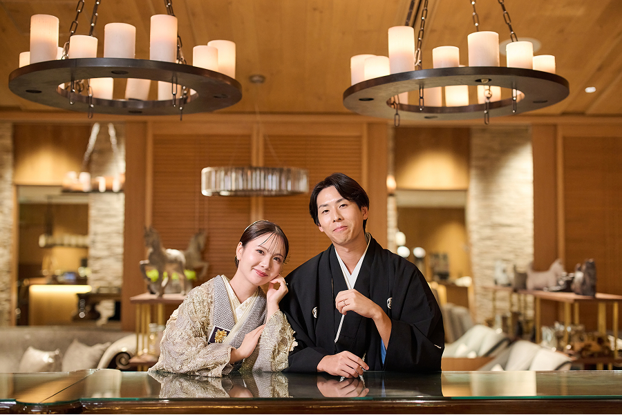 大人なモダン空間で和装が美しく映える一枚に。感度の高いインテリアが、上質な一枚に仕上げてくれます。和の格式とモダンな華やかさが融合し、特別感あふれるフォトシーンを演出します。