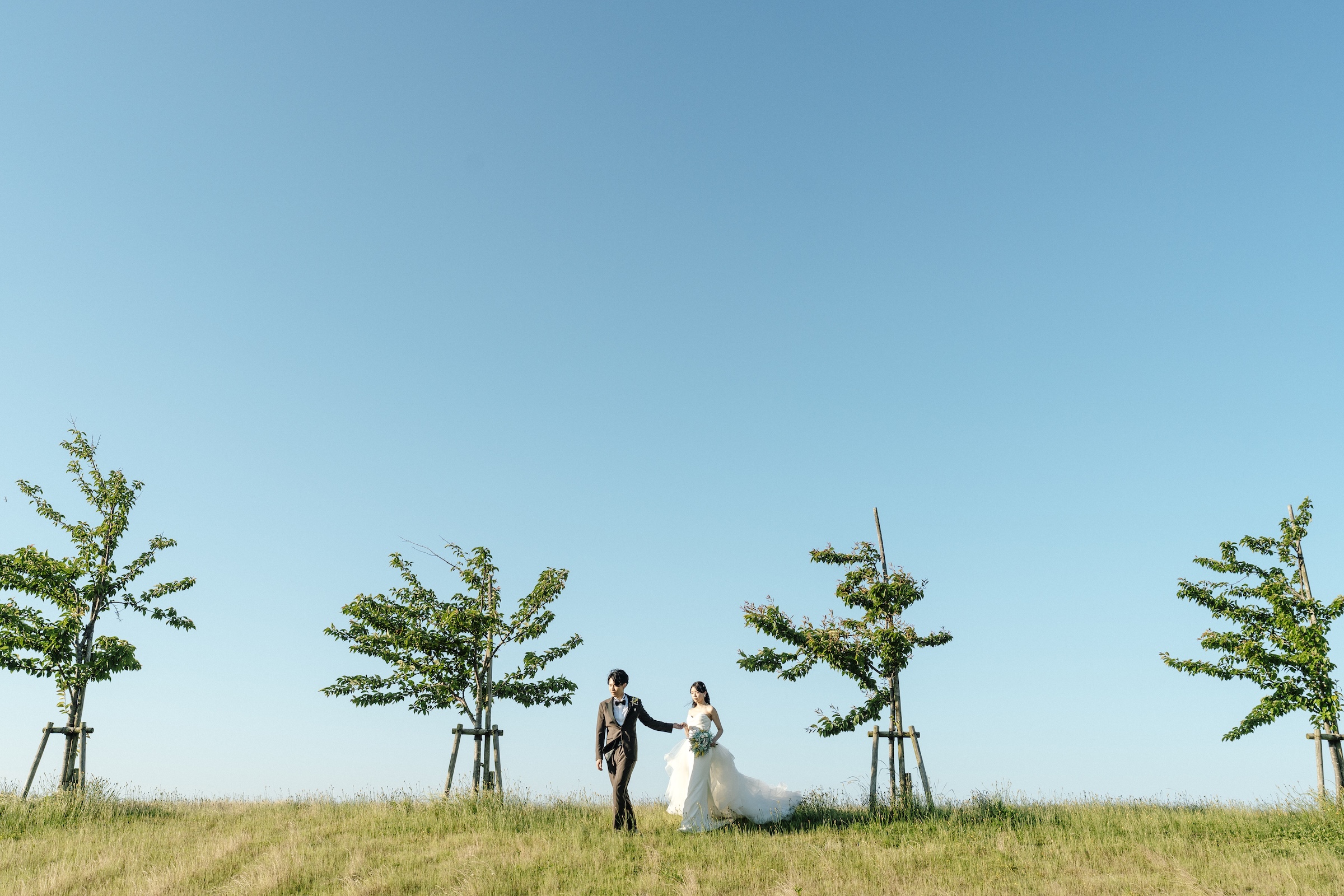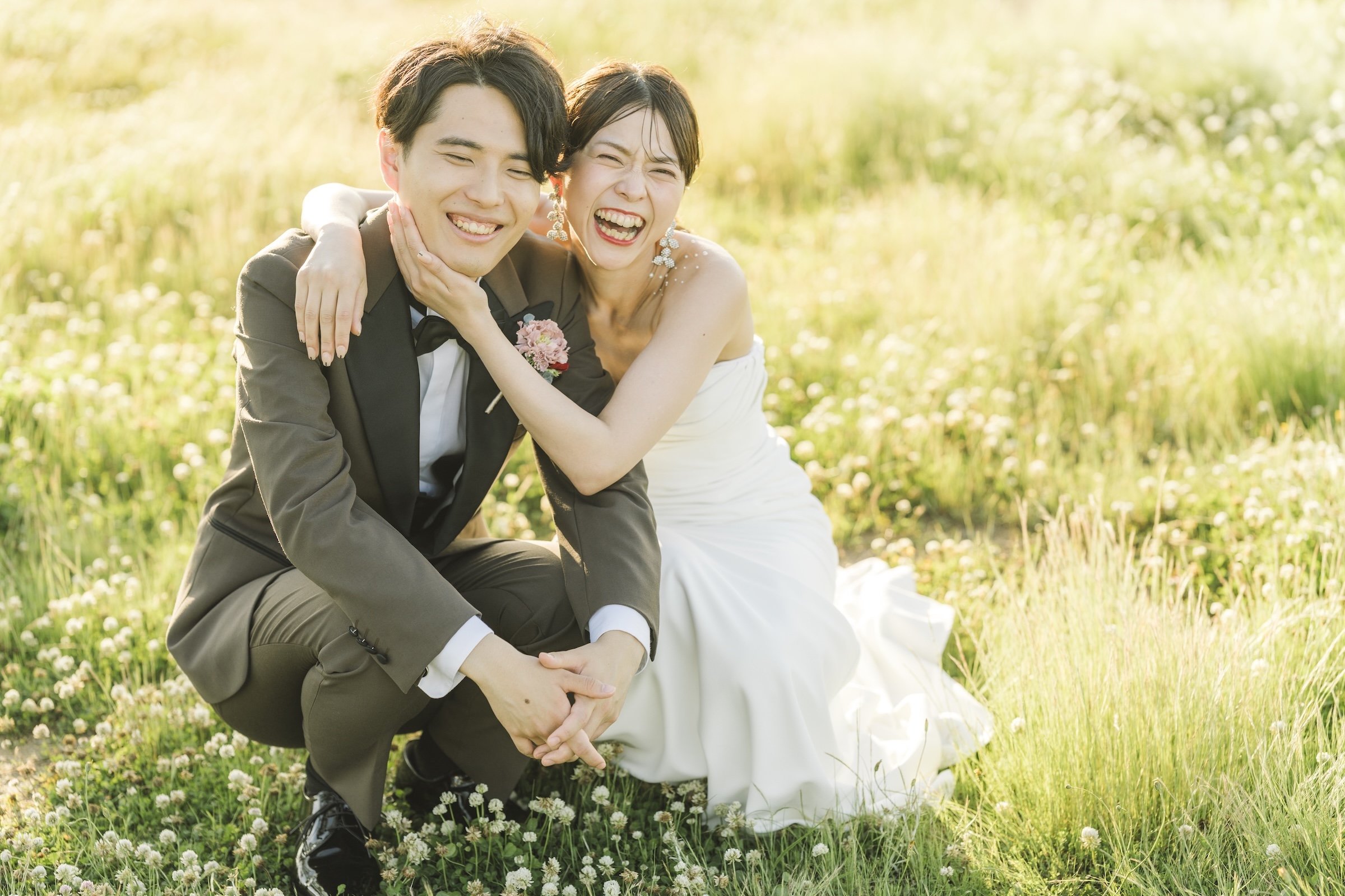 季節の草花が彩る豊かな緑を背景にすれば、お二人の笑顔がより一層輝きを増します。リラックスした雰囲気の中だからこそ見せられる、心からの幸せな表情。見つめ合うだけで思わず笑みがこぼれる、そんなお二人だけの優しい空気感をそのままに、温かみあふれる一枚に仕上がます。