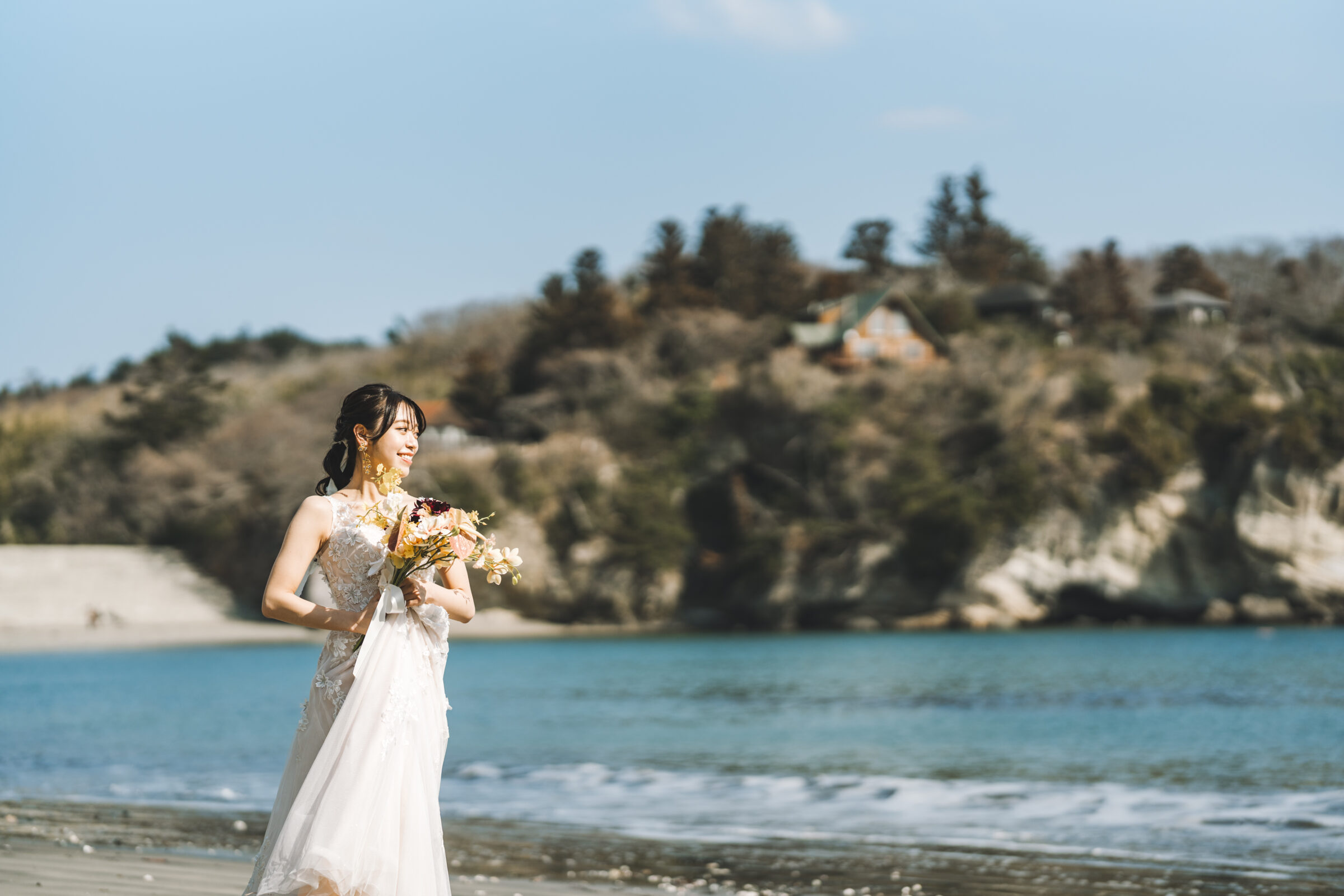 人混みの喧騒を離れた静かな環境で、聞こえるのは心地よい波の音だけ。潮風にドレスのベールを美しくなびかせながら、リラックスした自然体の表情で撮影に臨めます。夏のきらめき、冬の澄んだ空気感など、四季折々に変化する海の表情も魅力の一つ。宮城が誇る絶景の中で、ドラマティックな一枚を残しませんか。
