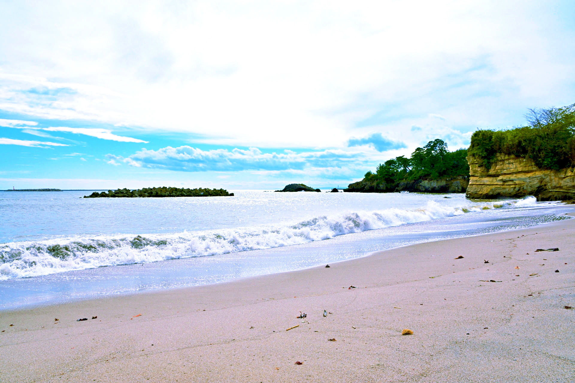 七ヶ浜の美しい海岸で、