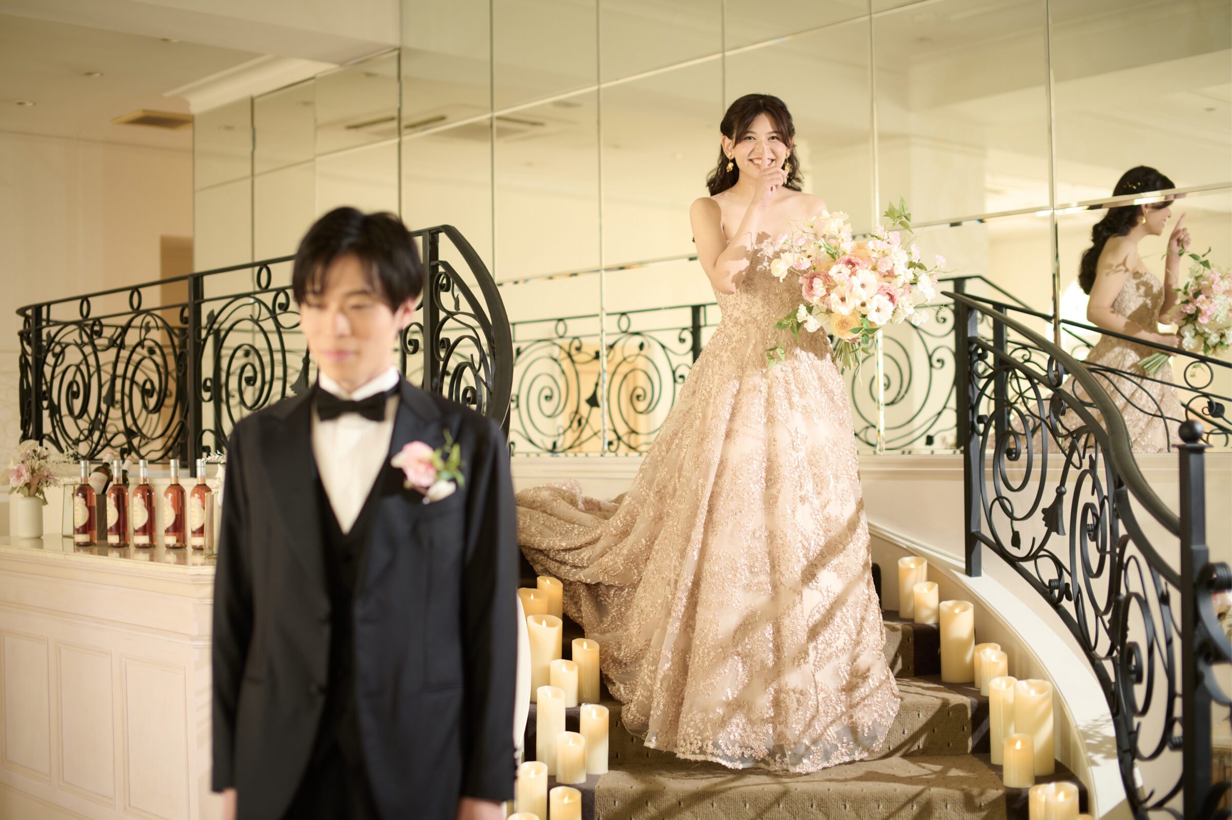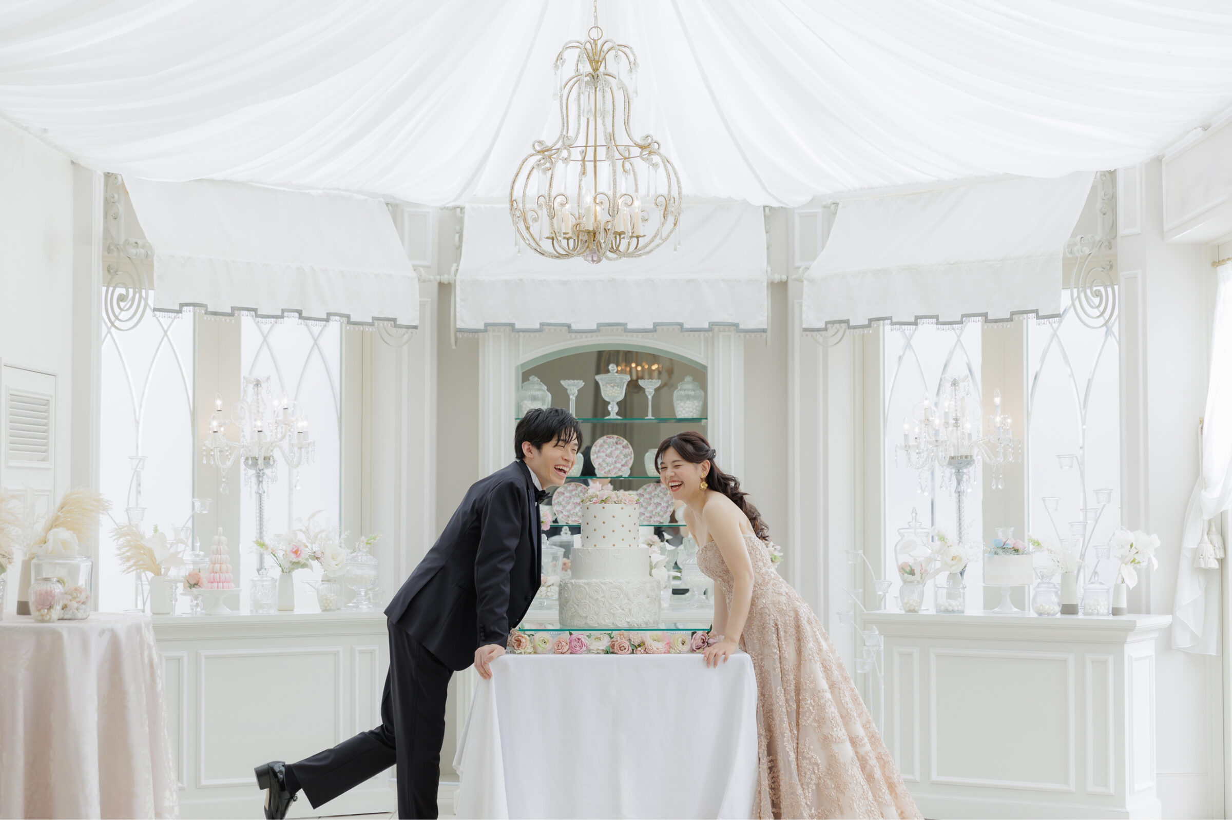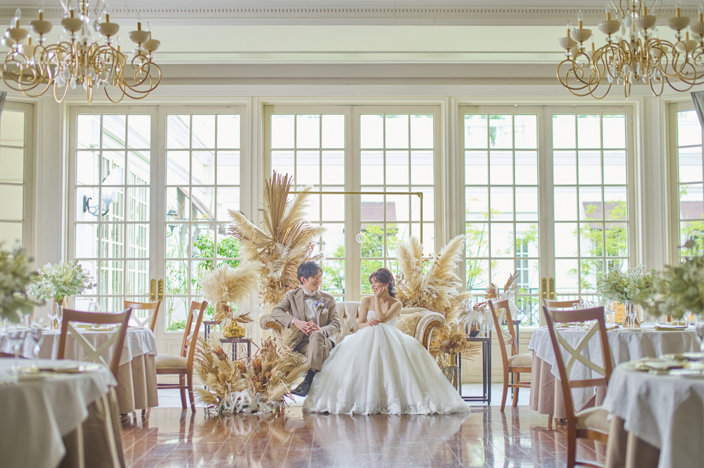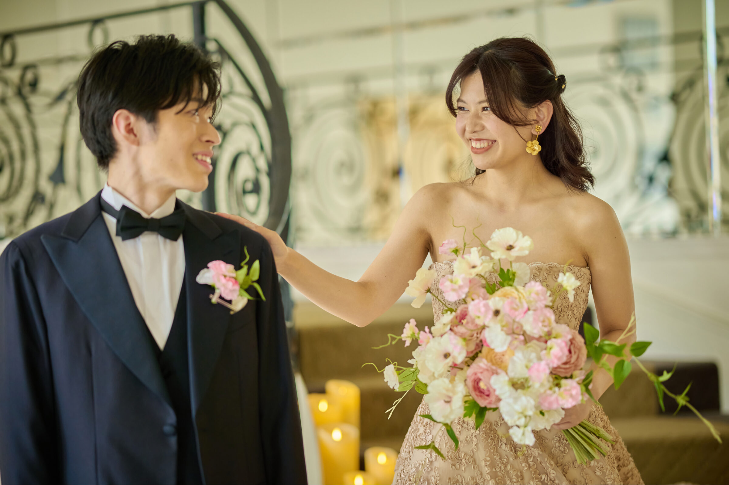 披露宴を思わせる華やかなフラワーアレンジメントに囲まれて、おふたりだけのセレモニーのようなワンシーンを演出できます。